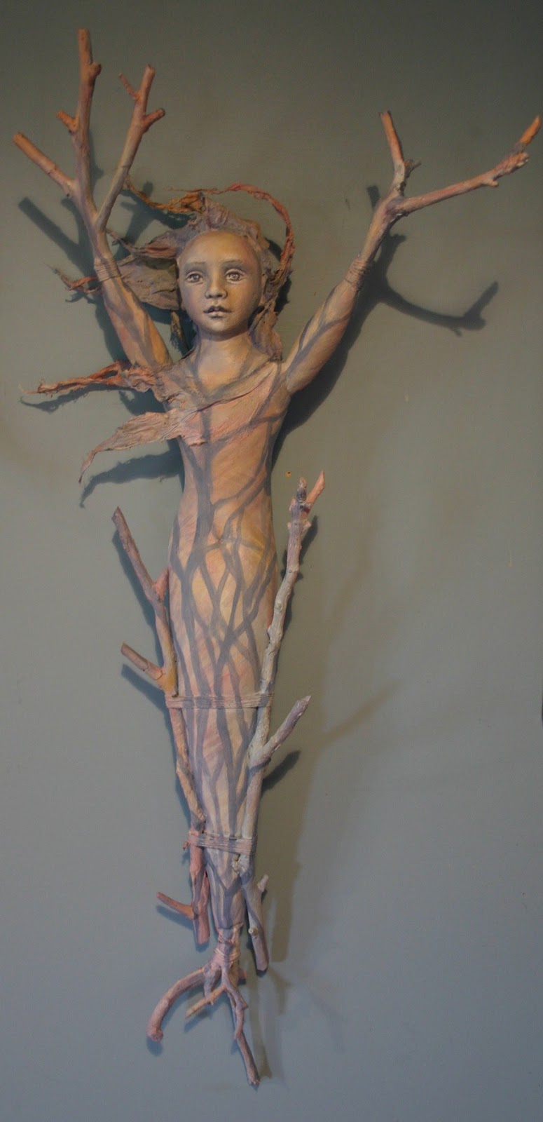 First, a new wall piece - "Winterlude" - mixed media (cloth, clay, sticks, string)