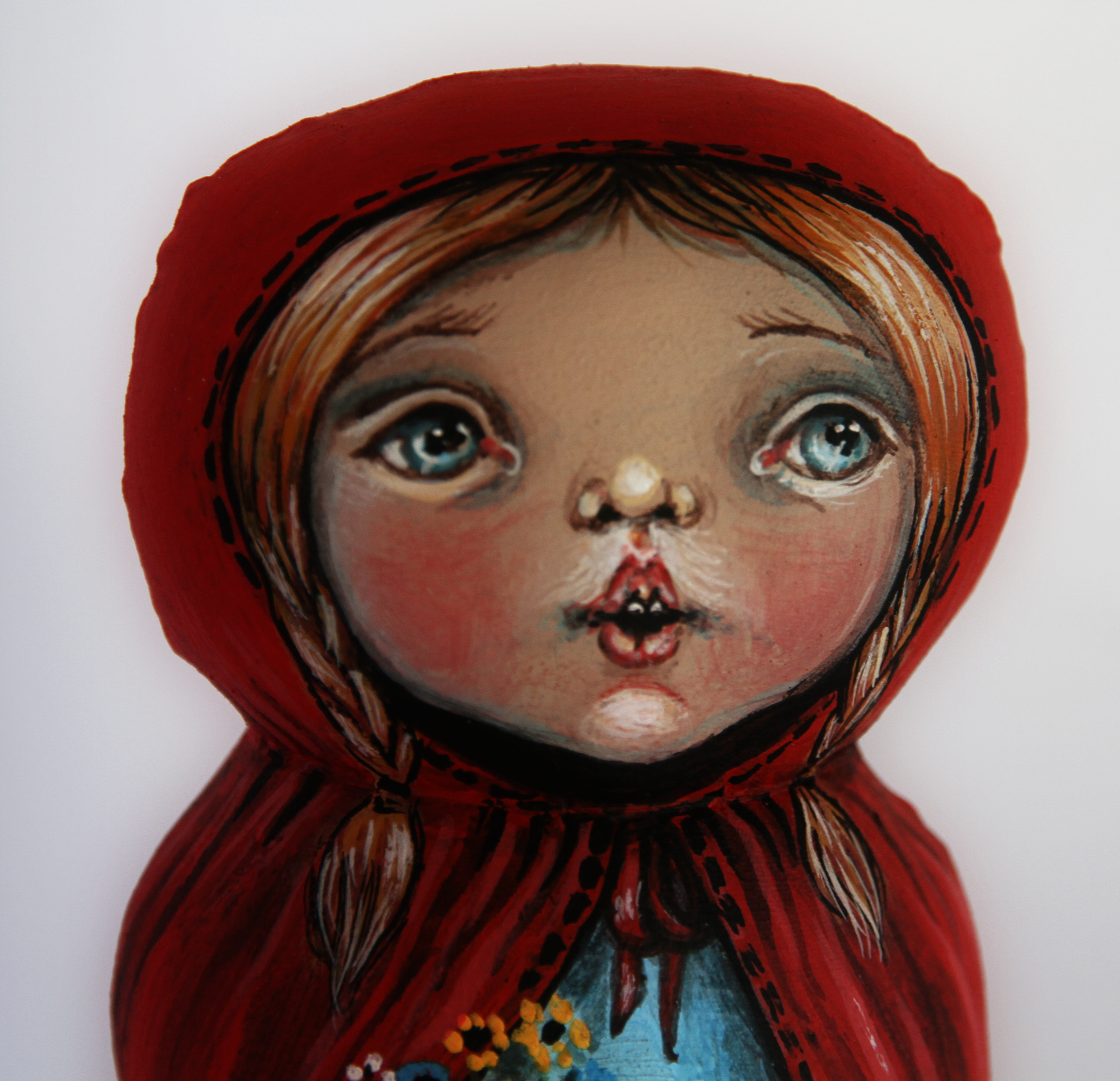 Well, this "Baby's Boots" project is finally finished! I'm particularly pleased with how she turned out and I love how her clothes suit her to a T. The wig (made from Lincoln sheep locks, which are more hair-like than woolly) worked well, too, styled using rags to curl it in the old-fashioned way. I used cotton batiste for the underwear and worked a crochet edging on the petticoat. The dress is smocked white-on-white with a crochet edging around the collar.